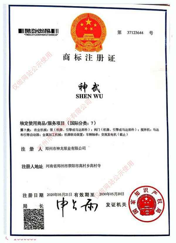 神武商标注册证